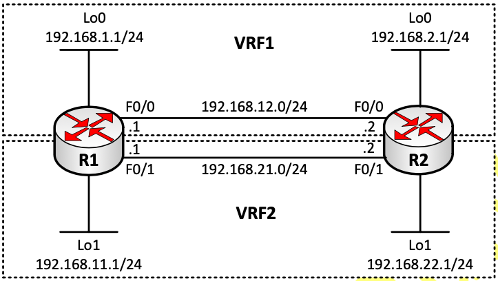 R1#ping vrf VRF1 192.168.12.2